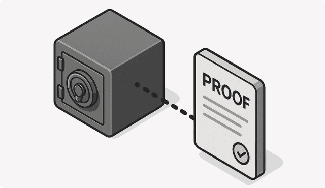 • Step 3: Counterparties accept this proof as final settlement. You keep the custody. We provide the certainty.