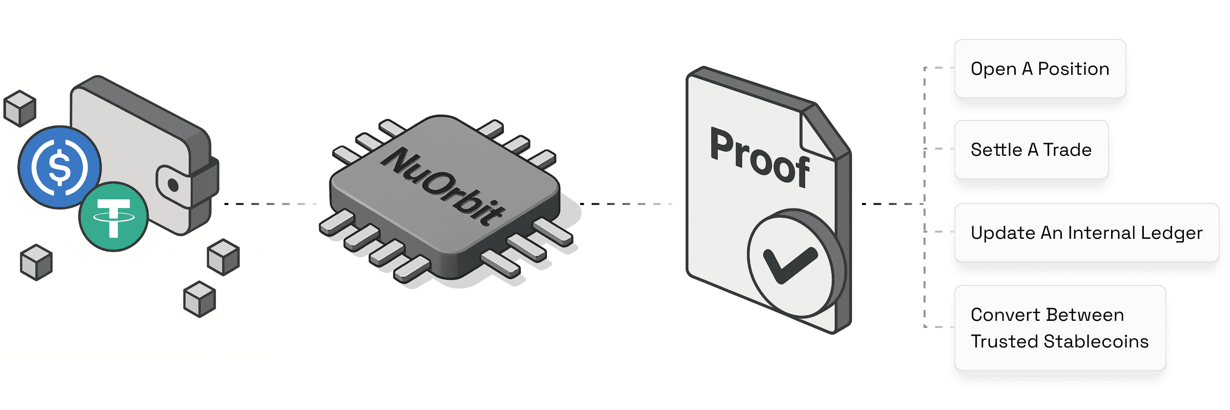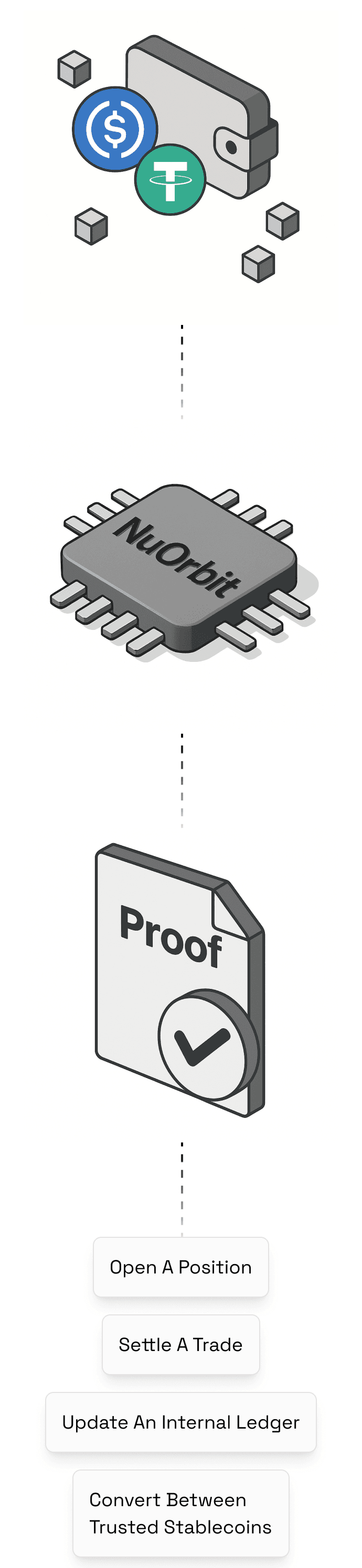 Under the hood, NuOrbit doesn't just pass messages; it orchestrates truth. We observe stablecoin payments, convert them into "Economic Finality," and instantly execute the settlement you need—whether that means teleporting liquidity (Nuvo Settlement) or verifying the data (Nuvo Verify). You keep your custody and risk engine; we eliminate the latency tax.