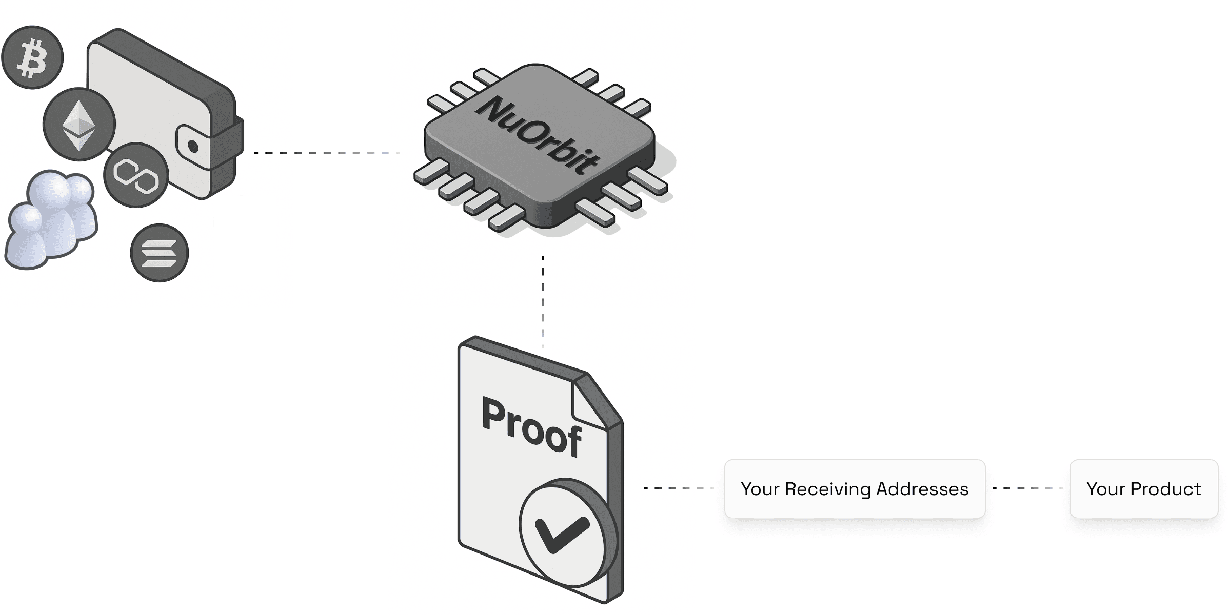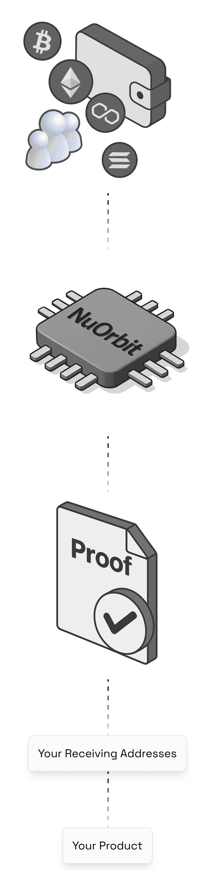 How it works: Users pay directly to your existing wallet. NuOrbit watches the chain and generates a Universal Receipt—a standardized, signed proof of payment.